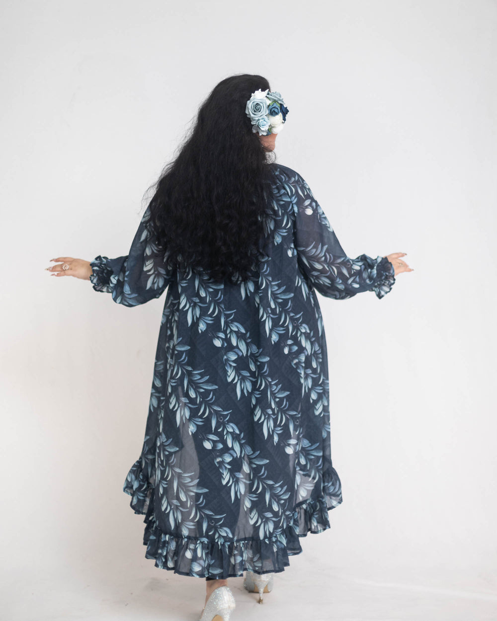 Introducing the Nohonani Hi-Low Blouse, a harmonious fusion of elegance and charm. With a high, ruffled, smocked neck collar and matching wrists adorned with delicate ruffles, this blouse exudes timeless femininity. Its cascading hemline features a cute ruffle, adding a playful touch to its sophistication. Crafted from premium viscose spandex, the white lining top ensures luxurious comfort while maintaining a flattering silhouette. Perfect for any occasion, from daytime refinement to evening allure, the Nohonani Hi-Low Blouse promises effortless elegance that transcends trends. Made in a light and airy Chiffon fabric and Poly Spandex fabric featuring our Punahelen print in Haze!
